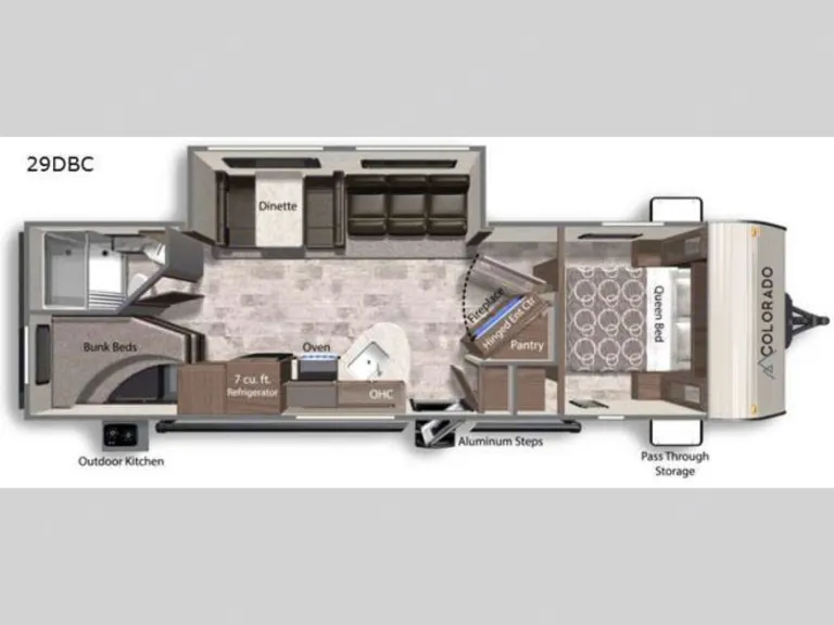 Dutchmen Colorado travel trailer 29DBC highlights:Double Size Bunks