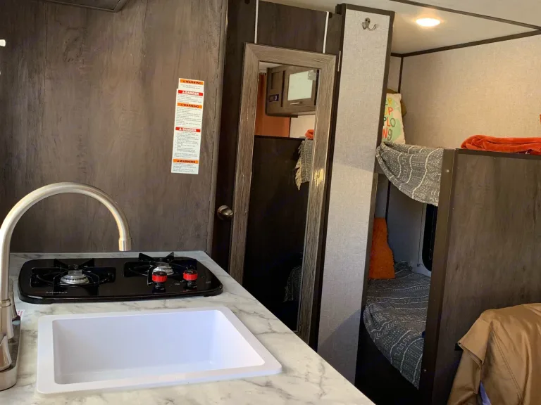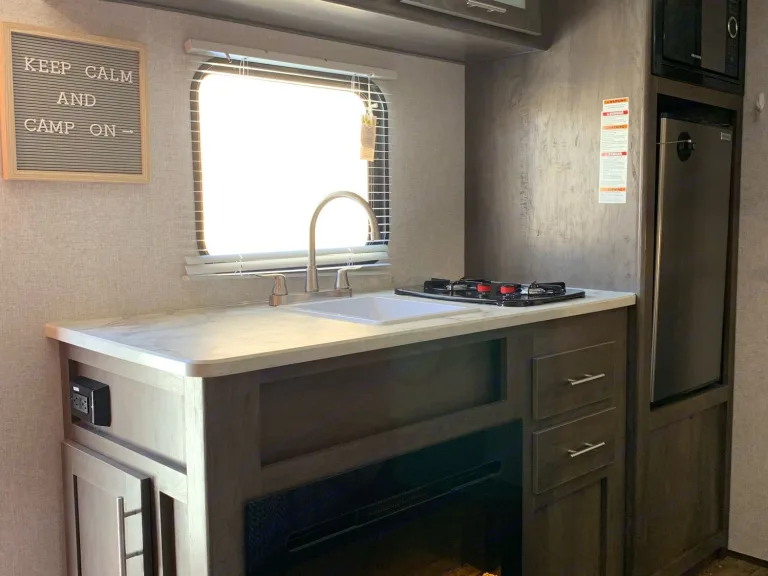 Brand new Coleman Lantern 17 B travel trailer-- also known as Poetry in Motion, is ready and waiting for her next adventure. She is a beauty. Measuring 21.5 ft. long, she is very easy to pull, but spacious enough to have a fun time with friends and family. Her layout is very functional, and has lots of room to store your belongings. She sleeps 5-6 people with: 1 queen short bed, a bunk bed, and a dinette table conversion. The kitchen has two burners, a microwave, a fridge, and is fully stocked for up to 6 people. The bathroom includes a separate shower and toilet. Enjoy longer lasting showers with the oxygenic showerhead technology. The icy A.C. and warm fireplace are sure to keep everyone comfortable in any weather. Kickback and relax outside under the electric awning, snuggle up indoors listening to your favorite tunes on the Bluetooth radio, or watch a movie on the Smart TV. Stocked with books, games, and features galore your troop will be creating memories to last a lifetime! Let us know more about your travel plans, and we will do our best to make them even more memorable. So, what are you waiting for? Come and take her for a spin!What's includedBedrooms: