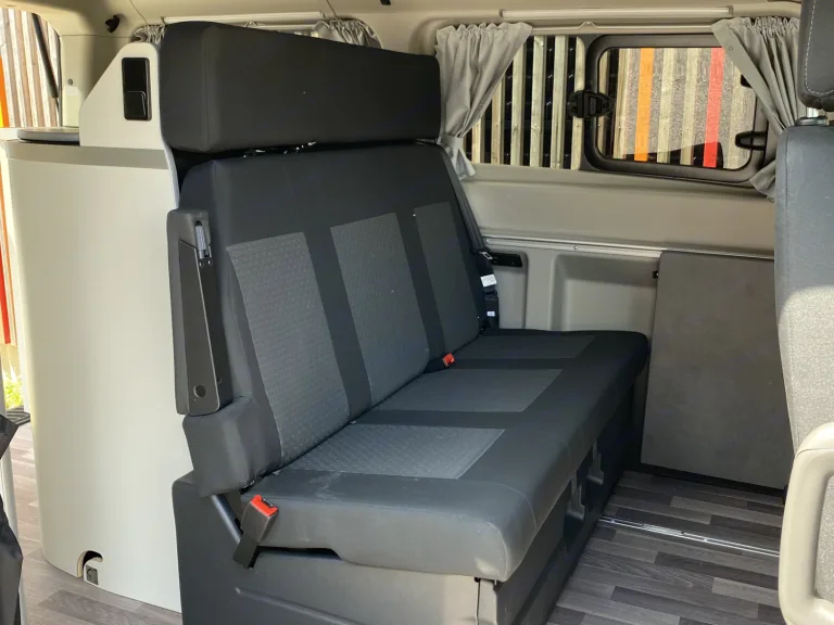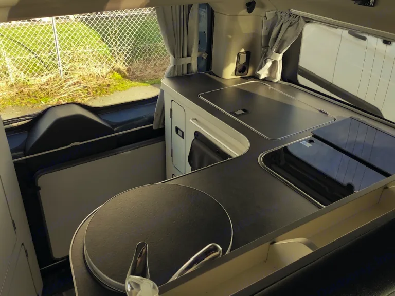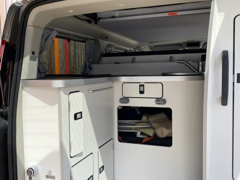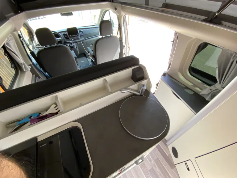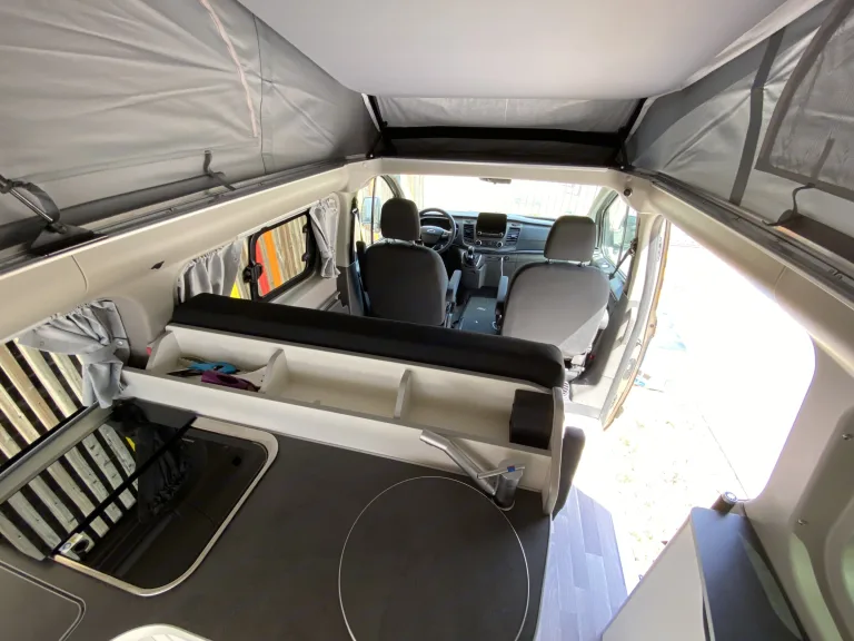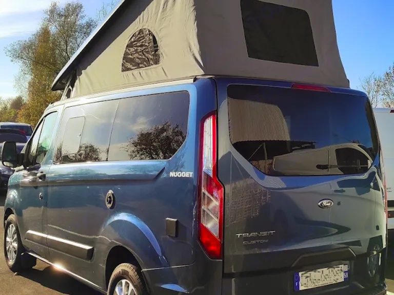Avec ses 5 places assises, le Ford Nugget est idéal pour un voyage en famille.Equipé d'un chauffe-eau.Le grand lit du haut (200 x 140) est parfait pour 3 enfants. La banquette bu bas se convertit en un lit de 190 X 130.La cuisine est séparée du couchage. Elle est équipée d'un réfrigérateur, d'un évier avec réservoirs eaux propres et grises ainsi que d'une gazinière 2 feux.Le véhicule est en boite de vitesse manuelle et équipé de toutes les options (dont Wifi et caméra de recul).