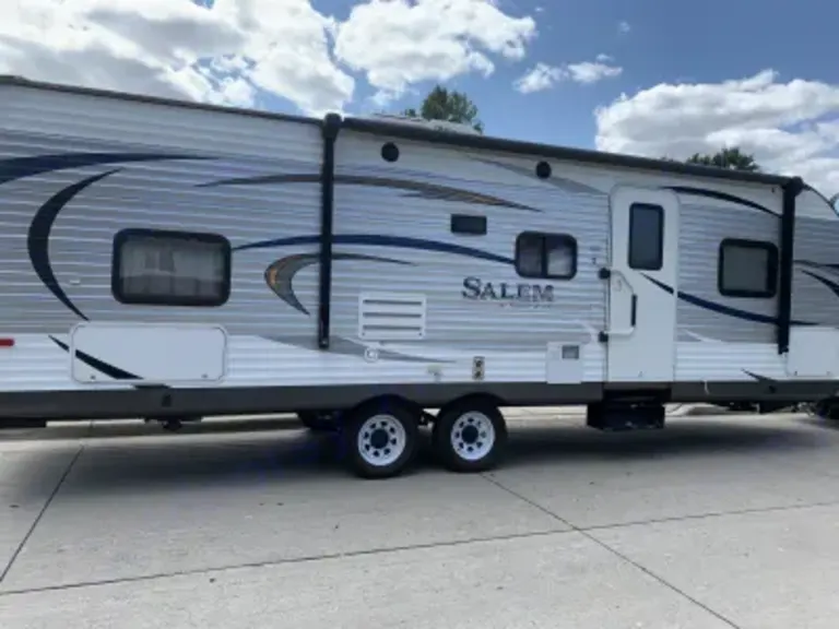 Adventure awaits! You and your loved ones will be ready for good times and smiling faces in sally the 2017 Salem forest river trailer. With a full size queen bed, table bed, sofa bed and 2 bunk beds, The Memory Maker is the perfect home away from home for many sizes of families, it can accommodate up to 8 adults comfortably, or up to 10 with younger family members. This 27 foot camper is large enough to be comfortable and not leave behind the essentials of home, such as a bathroom with a tub and shower, hot and cold running water, ac/heater and aux hookup radio with indoor and outdoor speakers. You won't be missing anything as this trailer is loaded with all the necessities. What's includedSheets, 2 pillows, and comforter set for the queen bed