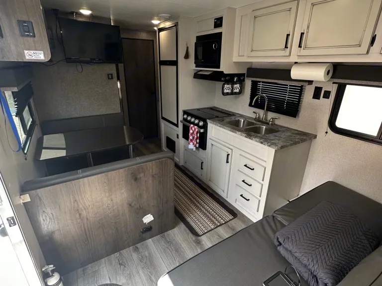 Perfect for off-grid camping. Great for a family with kids! Immaculate bunk house style with Private Master. Huge electric awning equipped with led lights and speakers. Fully loaded with solar, inverter, lithium batteries and a back up camera. Tv w/DVD player, over 200 dvds and cds, and assorted family games on board. Outdoor propane hookup for grill/stove. And a fully stocked kitchen! Let’s go Camping!What's includedPower cord