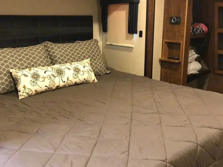 Large clean fifth wheel with king size bed, two sofas, two recliners and big screen TV. Unit is equipped hydraulic leveling for easy set up.