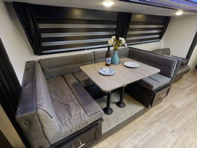 Willie is the ultimate family camper sure to help you make lasting memories. Willie has a double entry and access to the bath from outside. Where do you put all of the people? There is a queen bedroom as well as double bed bunk, with ladder. The dinette and sofa also convert to provide extra sleeping room for kids and adults.Are you tired of cooking over an open fire? The modern custom kitchen and extra-large U-shaped dinette are the perfect place for a quick breakfast or a card game on a rainy day.Concerned about storage. The oversized, full pantry and dinette features full length drawers to give you more than enough storage for camping gear and supplies.Let's step outside. Willie's exterior will provide a great entertaining space with the exclusive Cherokee camp kitchen and exterior speakers. Rest in the shade of the awning while the family plays a game of tag. What's includedWillie is outfitted with linens, cookware and utensils. This camper is for delivery and pickup only. We do recommend full service sites, but we are happy to provide fresh water at the start of the rental and disposal of wastewater at the end of the rental for a fee.