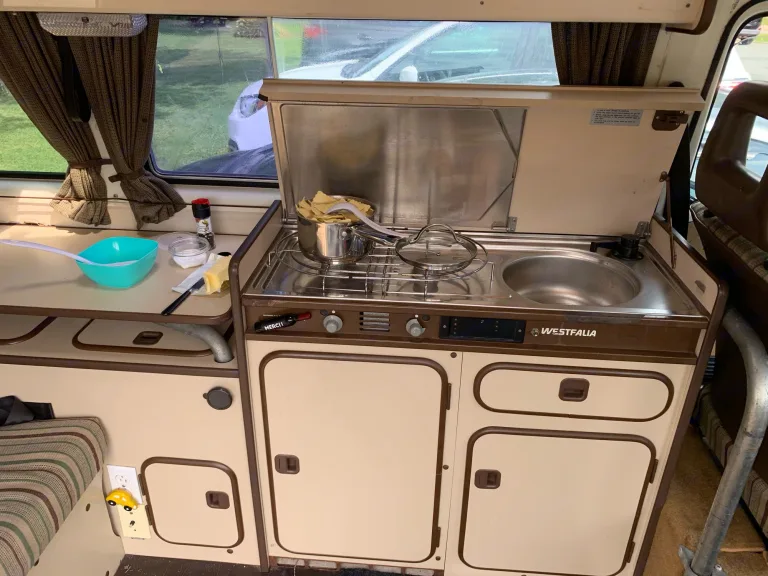 Notre première expérience en Westfalia ne pouvait pas être meilleure grâce au van d’Olivier, tout était fonctionnel, vintage mais super fonctionnel