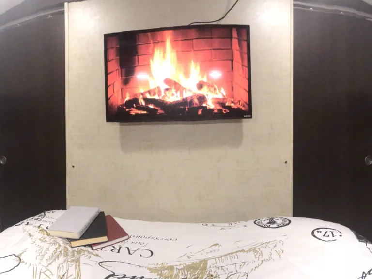 You can rest in the private master bedroom, which features two pocket doors. Fall right to sleep in the plush memory foam queen bed. Equipped with double closets, and tons of storage for your wardrobe, you can make sure that you have everything you need for your home away from home. You can also “Netflix and Chill” on an additional 36” smart TV right in your master bedroom.