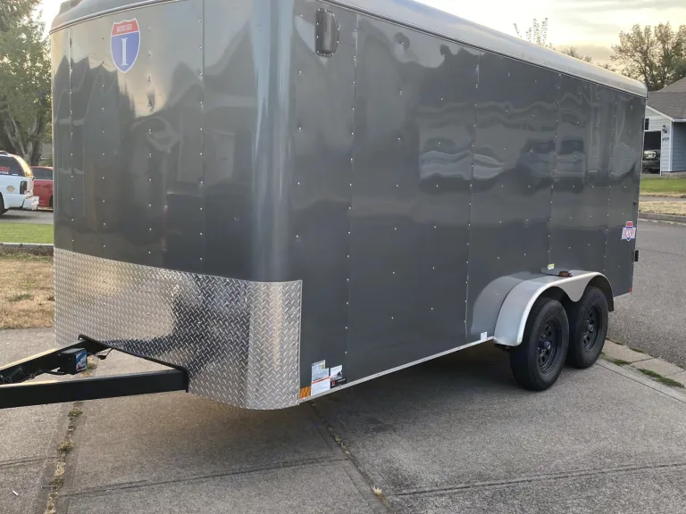 She’s a 16 x 7 foot enclosed cargo trailer. It has dual axels with trailer breaks. EZ tracks on the inside for securing items to wall. 4 tie downs, 1 in each corner. Paper towel holder and spare tire. It weighs about 2,500 lbs and can hold up to 9,000 pounds. Use this baby for your next move, or even a do what I do and take it camping!Delivery and pick up within 50 mile radius upon request.