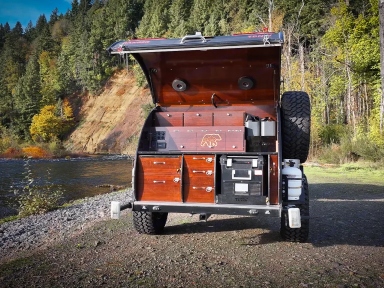 Meet the Ranger "Chinook Edition", your rugged-yet-refined companion for off-grid escapes and scenic weekends. Built for the adventurous spirit but packed with comfort-driven upgrades, this custom teardrop trailer is made to follow wherever the road (or lack of one) takes you. Whether you're chasing waterfalls in the PNW or settling into starlit deserts, the Chinook Edition blends backcountry capability with boutique craftsmanship.Compact enough to tow with most vehicles, yet tough enough for mountain trails, it’s perfect for couples, solo travelers, or adventurous duos with a dog in tow.Rental Highlights: