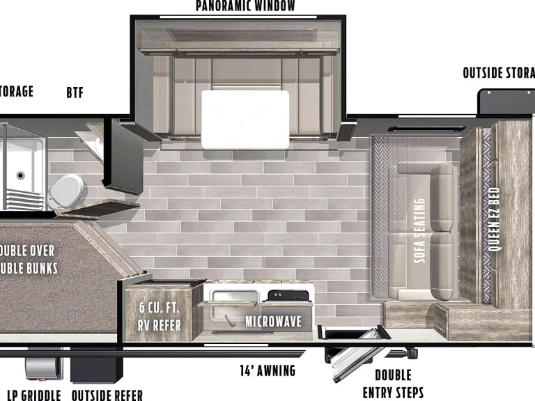 Brand NEW!! Compact camper outside but spacious Inside. Slide out for U-shaped dinette for more seating and floor space. Murphy bed to allow easy sleeping to sitting accommodations. Outdoor griddle and fridge for outdoor cooking. Full fridge/freezer so you can leave the cooler at home. Shower. Power awning with outdoor lights. A/C , heat, and hot water heater. Removable gate on top bunk for Little kids to use without falling out. Also installed a T.V with amazon fire stick if the weather doesn’t cooperate.Comes with dishes, silverware, cleaning supplies, pop up garbage cans, bluetooth speaker, area rug, 10” canopy, cooking tripod, sheets and pillows, fill propane tank, and folding lawn chairs.Delivery/set up negotiable.