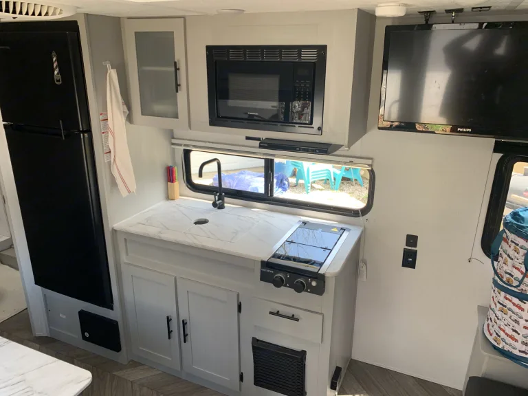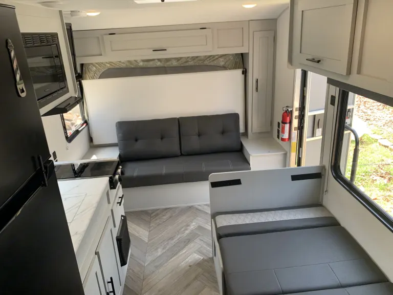 New Camper! Great shape ready to go on your next adventure. Sleeps 7 with one queen bed, 2 full bunk beds, and the dinette converts into bed. This RV is great for Boon-docking! With two deep cell batteries, this RV runs almost entirely no battery power. Other than the AC and microwave, all systems are fully operationally without being plugged in. We have stocked the RV with most cooking utensils needed. Please bring your own bedding for sanitation reason. Military, police, fire, Ems, and other healthcare workers please message me and receive additional discounts. What's includedThis RV comes with all kitchen utensils, pots, plates, and bowls. Some food storage is also available. It comes with just about everything you may need, we just ask you bring your own linens and pillows due to sanitary reasons. RecommendationsWe love the outer banks. It is one of our favorite places to go. Other things to notePlease no smoking in the RV. We ask you to help us and bring the RV back as clean as possible to avoid a cleaning charge of $60. There will be a $35 dumping charge if we need to dump the gray or black water tank.
