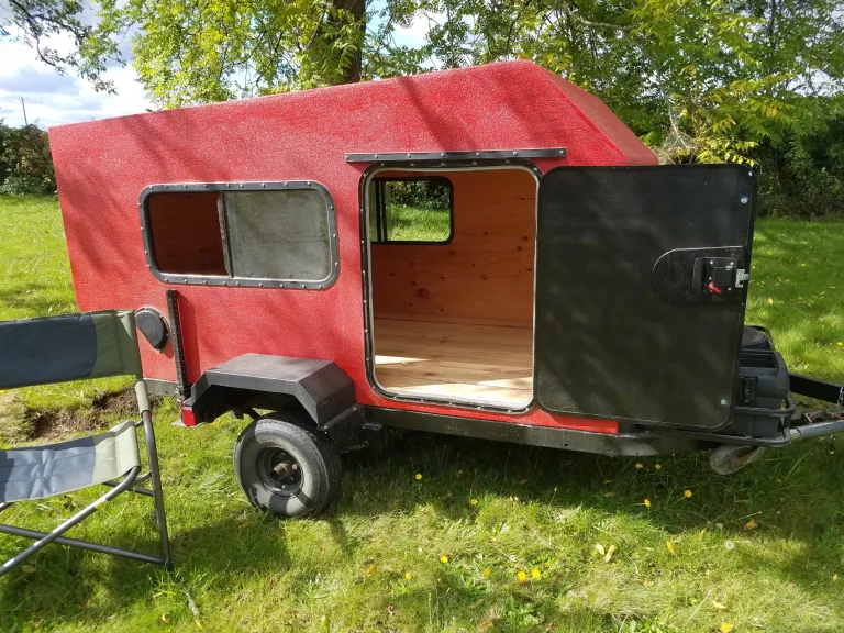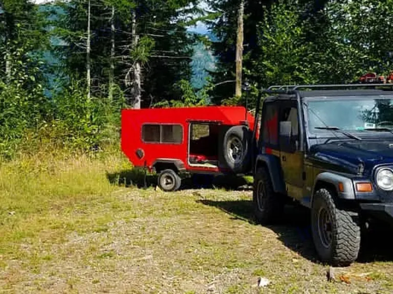 Have you ever thought about camping in a teardrop adventure trailer? Red Adventure Overland is ready to go where you want. She can fit into tight and small camp spots. So easy to tow behind your mid range vehicle, you will be delighted in the amount of gas you will save. Red Adventure is fully insulated with a rustic wood interior, like a cabin in the woods.What TO Bring:Red Adventure Does NOT come with a mattress, so you will have to provide your own air, foam or self inflating sleep system. Cooler, chairs, lighting, cook gear ( if you are using a backpacking stove to heat up water for a Mountian House meal, I am ok with using that inside Red Adventure).To tow Red Adventure you will need a 1 7/8 ball hitch with a 4 pin trailer light connector.Weekends book fast so let me know if there is something I can do to make your adventure easier, just message me.