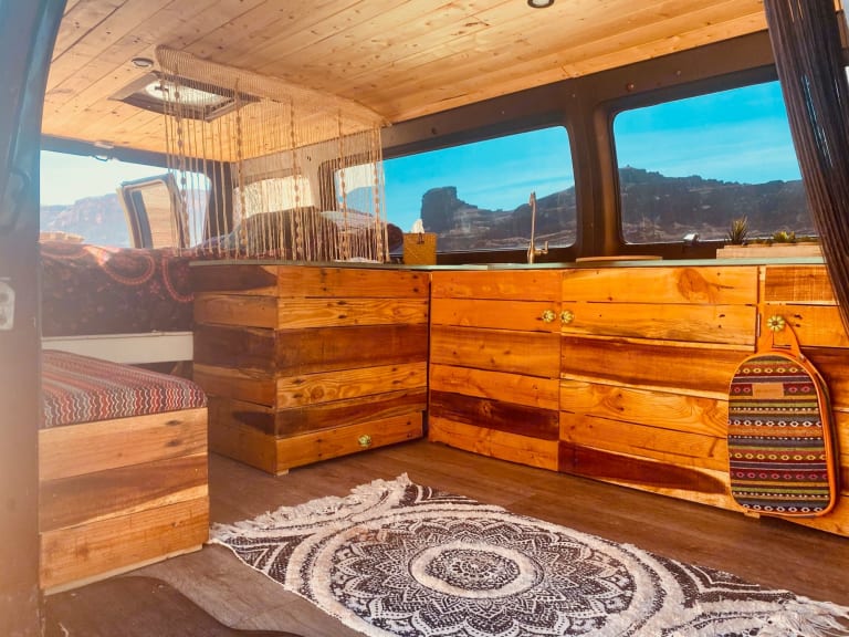 She’s a fun adventure van. Whether it’s some friends traveling to the desert in Moab or a couple headed up to the hot springs in nearby Idaho - she’ll do the trick just fine! Her build out was recently finished and the decor gives you all the right vibes. 1000 watt Solar power, freshly filled artisan well running water, full size bed with 100% organic made futon. She even has her own instagram account! @rubygypsyvanWhat's includedFresh linens, towels, cooler, camping chairs, eating and cooking utensils, table settings for four, electric hot pot, coffee press, 12 gallons of artisan well water & s’mores.RecommendationsUtah is full of great places to explore. We have several recommendations just based on the time of year! If you’ll be traveling out of utah please message us first for approval! We prefer the van to stay close and not be out on long road trips. She’s 20 years old. We like to treat her so and keep her close safe and not overworked.Other things to noteShe’s strong for her age, but keep everything within reason. This isn’t the rig to go rock crawling in, but a nice peaceful back in camping spot would do just fine. She’s also gets about 15-16 mpg.and has a 25 gallon tank. We’ve noticed it’s about $70-$100 per tank depending on gas prices and can go apx 400-450 miles on a tank. Note the year. She’s got creaks and rattles but we do routine maintenance to keep her driving well and safe.