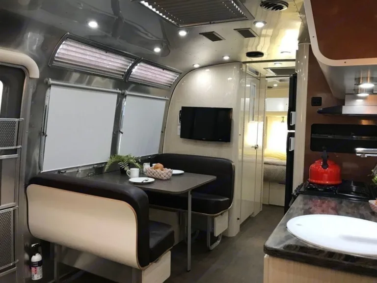 The perfect Airstream option for multiple couples or a family. Plenty of room to stretch out, all the amenities you could ask for, including 3 separate beds, 2 A/C units, separate shower and bathroom, 2 TVs, and a full kitchen! This unit makes sure none of the comforts of home are left behind when you travel.As with all Airstreams, this one is fully loaded. It includes:- Separate full-size Fridge and Freezer