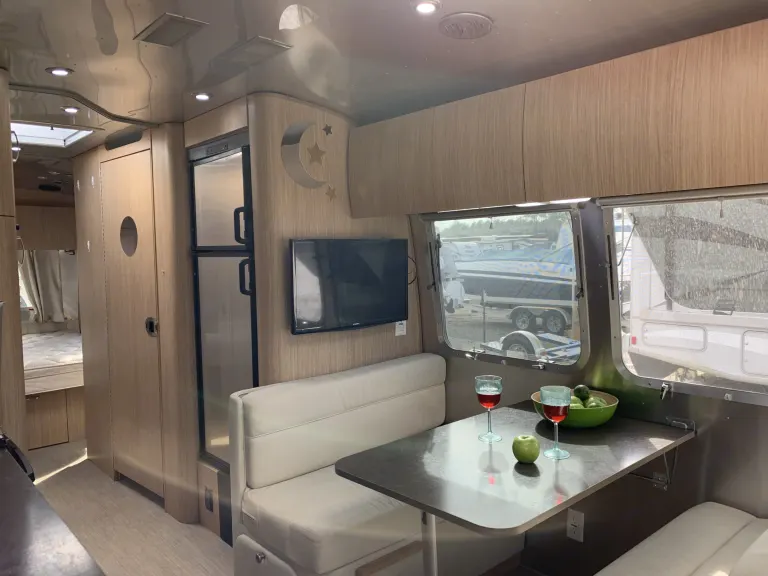 The perfect Airstream option for multiple couples or a family. Plenty of room to stretch out, all the amenities you could ask for, including 3 separate beds, 2 A/C units, separate shower and bathroom, 2 TVs, and a full kitchen! This unit makes sure none of the comforts of home are left behind when you travel.As with all Airstreams, this one is fully loaded. It includes:- Separate full-size Fridge and Freezer