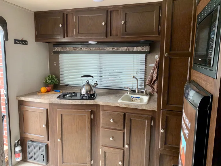Our trailer is perfect for a small family (2 adults, 2 kids, or 3 adults) Very lightweight (We use a Toyota Tacoma, empty tanks), easy to pull, and cozy!What's includedIs Vacation ready! Two sets of towels and fresh linens included, 2 camping chairs (if you need more just let me know), RV toilet paper, body wash, shampoo, hand soap,kitchen utensils, toaster, cookware, two blankets, exterior bumper- mount grill, fire extinguisher, led lights and games. Maybe, I’m forgetting something but if you have any questions please let me know!