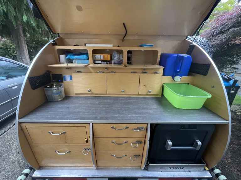 Get outside and enjoy nature in this cute teardrop trailer. What's included• cooking supplies including pots and pans, cooking utensils, plates, cups, cutlery