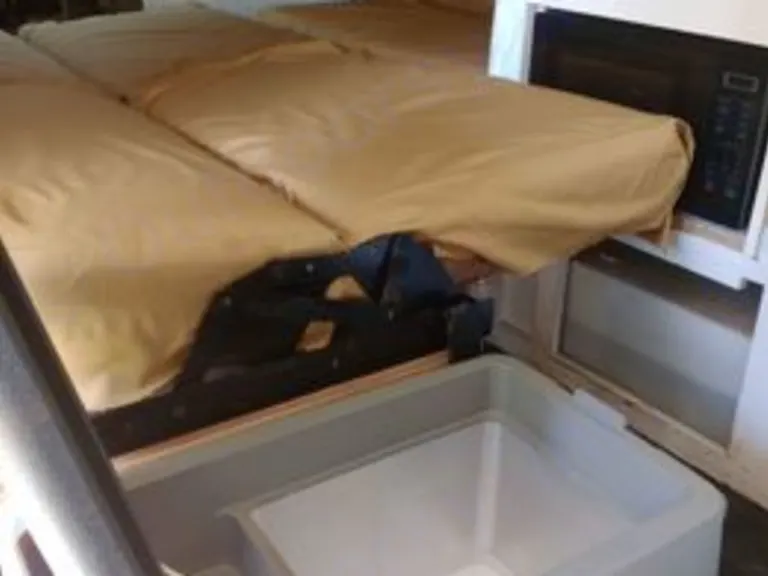 Child middle seat, 2 X 12V interior light, kitchen fan, convertible sofa bed, sleep 2 adults and a child.