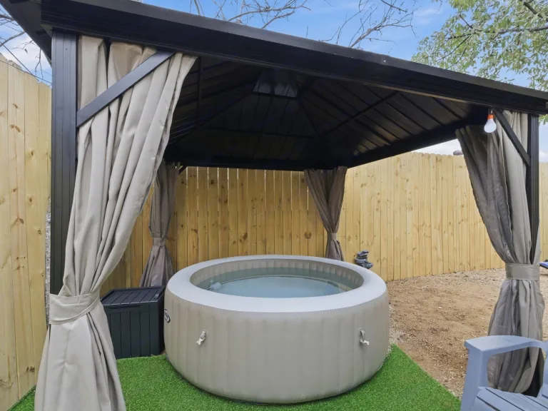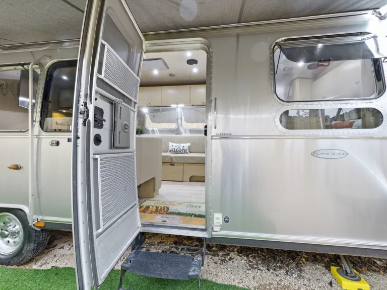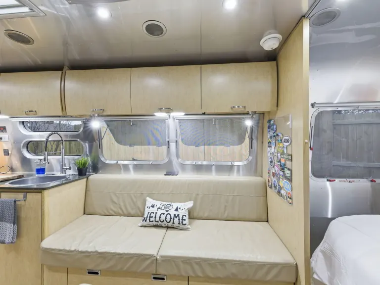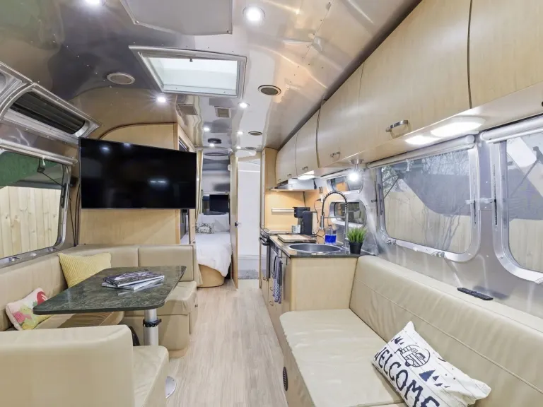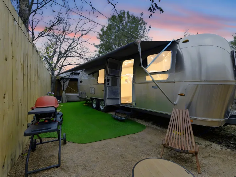 "Experience glamping in the heart of the city in this private, cozy Airstream (30 ft. Flying Cloud) where you will enjoy the hot tub, hammock swing, fire pit, and corn hole (Stationary Travel Trailer/Non-towable). This space is ideal for couples or small families looking for a one-of-a-kind stay. We are minutes from many local attractions, restaurants, and shops. We look forward to hosting you!"What's included▶︎ Relaxing and Romantic Outdoor Space with jetted spa hot tub, 8ft tall privacy fence, surround outdoor lighting, hammock/swing, fire pit, and Adirondack chair.