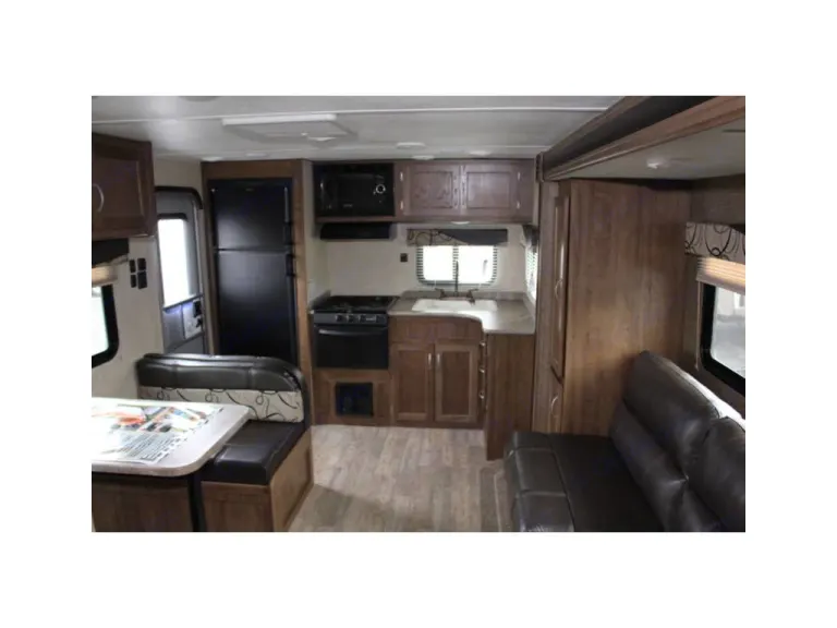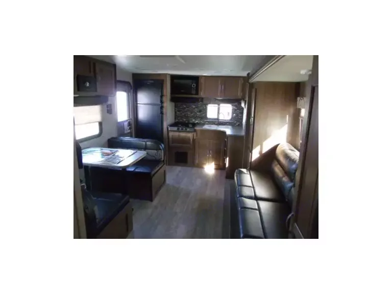 The Gulf Stream Conquest 238RK model is a great mid-size travel trailer that is perfect for a couple or a family that features two entry doors, a large slide out and three sleeping areas for up to 6 people. The floorplan layout is a very functional rear kitchen, living room slide out with sofa and closet and a pantry. The kitchen is home to a gas/electric fridge, 3 burner stove/oven, microwave, large double sink and plenty of countertop space and cabinetry. The queen bed is in its own room for more privacy and their is a very nice bathroom with large neo-angle shower, toilet, sink and medicine cabinet. This one has a dry weight of around 4830 pounds for easy towing. We can also deliver and set it up for you just let us know when your booking.