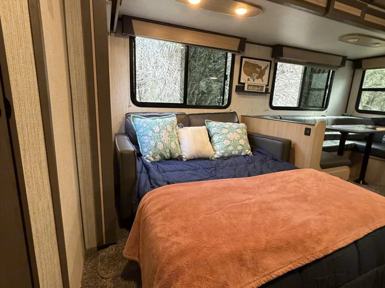 Hi, I’m Dana, the heart behind At Home on the Road. My travel companion is Finn, a very large and very friendly Great Dane who joins me on many of my outdoor adventures. I’ve always believed in the importance of slowing down and creating space for real life to happen. Morning coffee outside, campfires at night, and time together without the rush of everyday schedules. With a background in hospitality and real estate, I know how much thoughtful details and a comfortable space matter. This camper is my very first RV, and I’m loving the experience of RV camping and the simple freedom it brings. I started At Home on the Road to share that feeling with others. My goal is to make camping easy. With delivery and full setup available, you can simply arrive, settle in, and start enjoying your trip. Just show up and do you. The adventure part is yours.