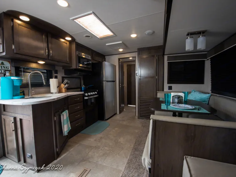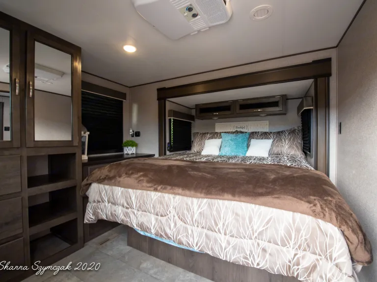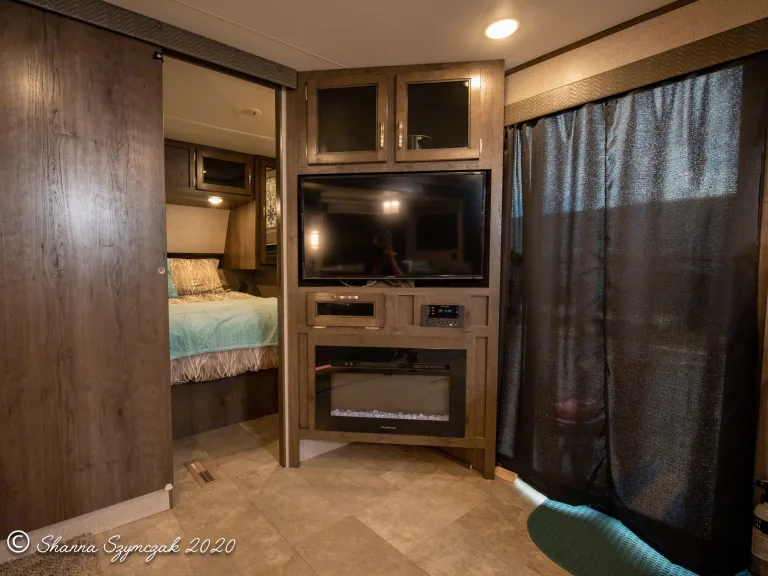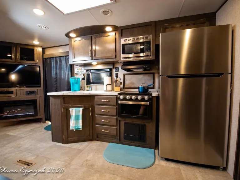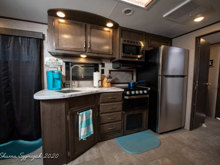 Our 40 foot Travel Trailer is fully equipped with amenities to make you feel at home such as a cozy living space that boasts a large dinette, fireplace,and en extra lush sofa sleeper, a fully functional and stocked kitchen with a Full size refrigerator, TWO Private Bedrooms: One bedroom features a King size bed along with plenty of storage, a television and a private entrance/exit door. The Second bedroom has a Queen size bed with its' own private sliding door. Additional sleeping accommodations are in the living area where the dinette transfers to a bed for 1-2 guests and a full size sleeper sofa which can comfortably sleep another 2 guests! This RV has it ALL and so much more!!Additional amenities to make your trip comfortable include:Linens, Blankets, Bath Towels, Pillows
