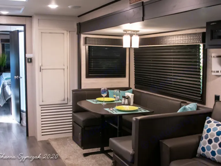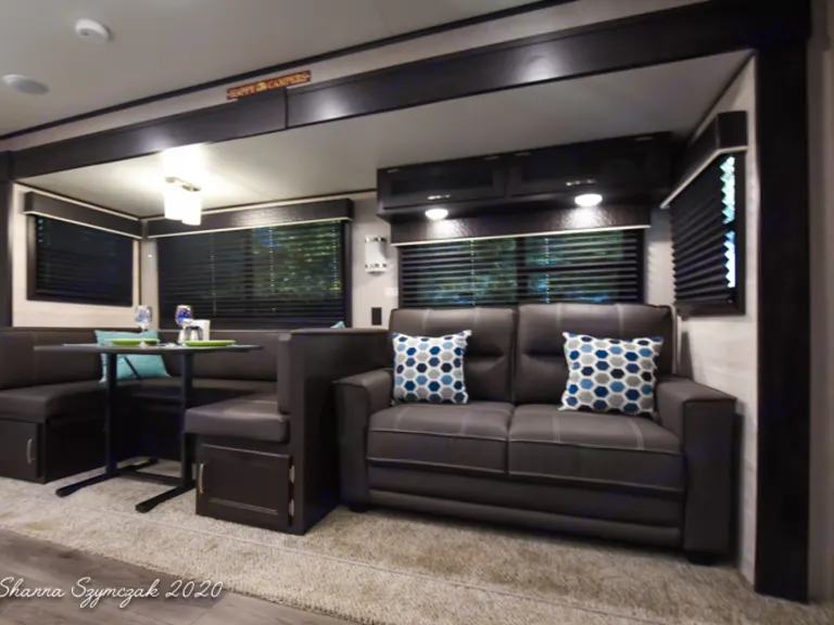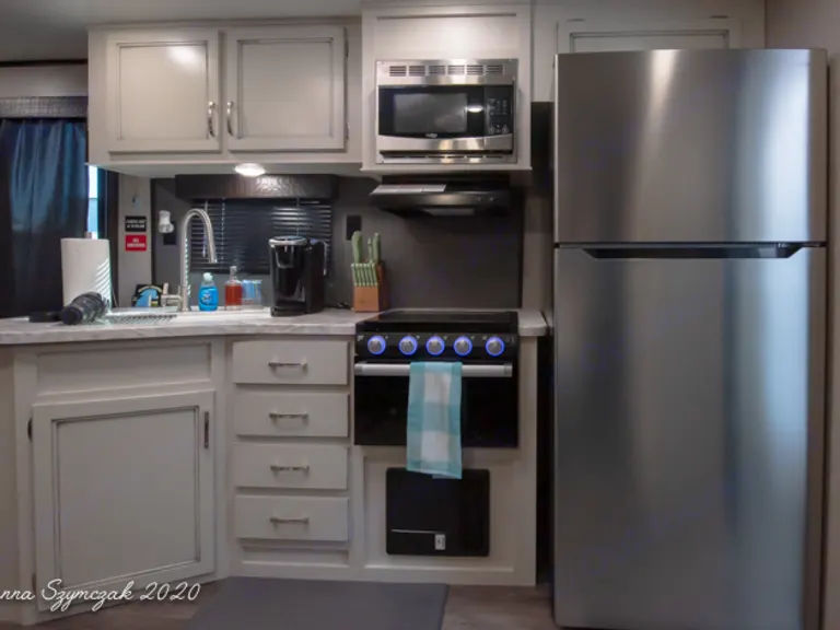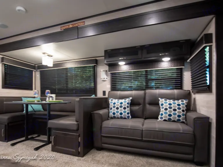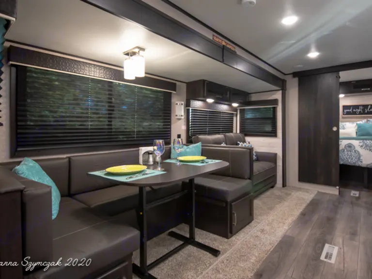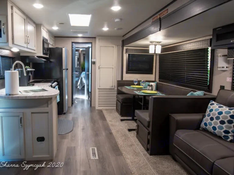 ALL Inclusive Rental!!Our 40 foot Travel Trailer is fully equipped with amenities to make you feel at home such as a cozy living space that boasts a large dinette, fireplace,and en extra lush sofa sleeper, a fully functional and stocked kitchen with a Full size refrigerator, TWO Private Bedrooms: One bedroom features a King size bed along with plenty of storage, a television and a private entrance/exit door. The Second bedroom has a Queen size bed with its' own private sliding door. Additional sleeping accommodations are in the living area where the dinette transfers to a bed for 1-2 guests and a full size sleeper sofa which can comfortably sleep another 2 guests! This RV has it ALL and so much more!!Additional amenities to make your trip comfortable include:Linens, Blankets, Bath Towels, Pillows