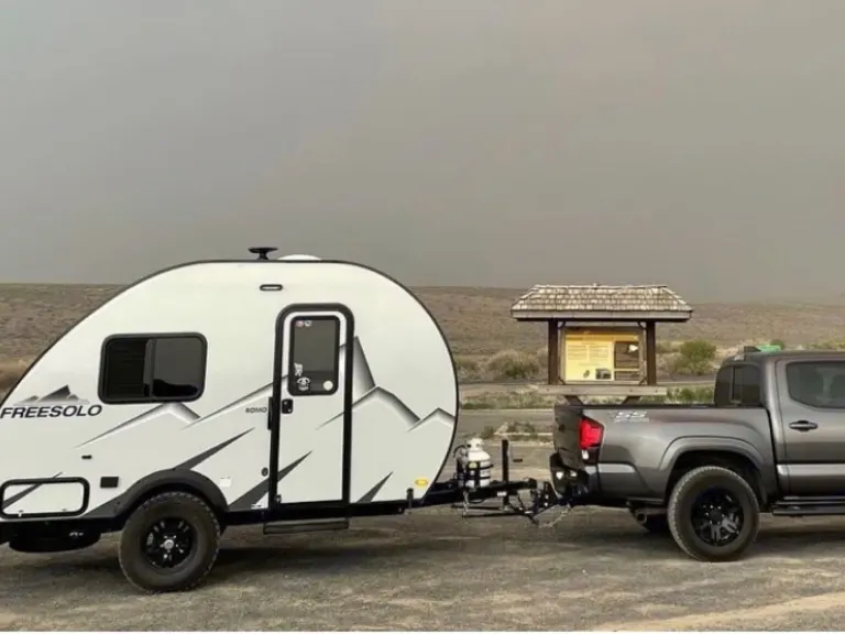 Spacious teardrop trailer.5,000 BTU AC, propane furnace, Off-road tires, wet bath, two-burner stove, microwave, dinette, three-way fridge, water heater, outdoor shower, Bluetooth stereo w/ built-in speakers, 100 AH lithium iron phosphate battery, 100 watt solar panel with 20 amp solar charge controller, 20 lbs propane tank, 21 gallon freshwater tank, 15 gallon grey water tank, 8gallon black water tank, 3 USB chargers.What's includedRental price includes 3,000 WATT inverter generator, 30 amp connection line, sewage hoses, full 20 lbs propane tank, cookware, two folding camping chairs, fresh linens.