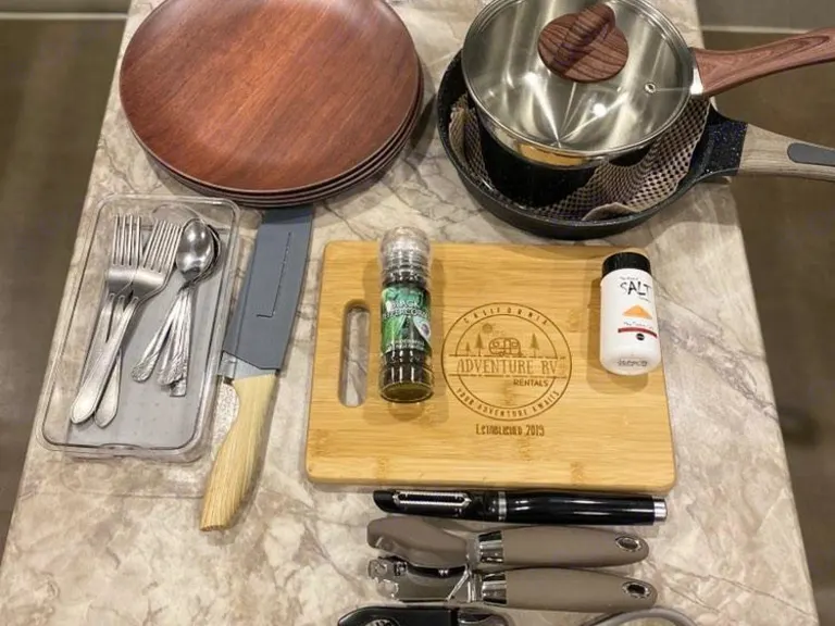 • We've thought of everything - you'll find pots, pans, knives, a wine opener, a potato peeler, plates, cups, a can opener, silverware, a cutting board, and cooking utensils.