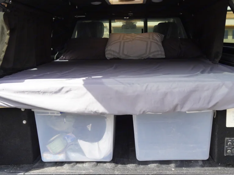 2016 Ram Truck with camper shell and RV queen Bed! has external battery for charging devices, grill and outdoor solar shower. Perfect weekend rig, easy to drive and not as complicated as an RV. Comes with bike racks and stand up inflatable paddle boards upon request.What's includedFresh Linens, camping chairs, table, stove and refrigerator. Truck can also rent with bike racks and 2 inflatable stand up paddle boards for an extra fee.RecommendationsPerfect for weekend trips to San O, San Jacinto, JTree or Anza Borrego.Other things to noteTruck is 4x2 so no off road driving. It can handle dirt fire roads but its not suited for off roading.