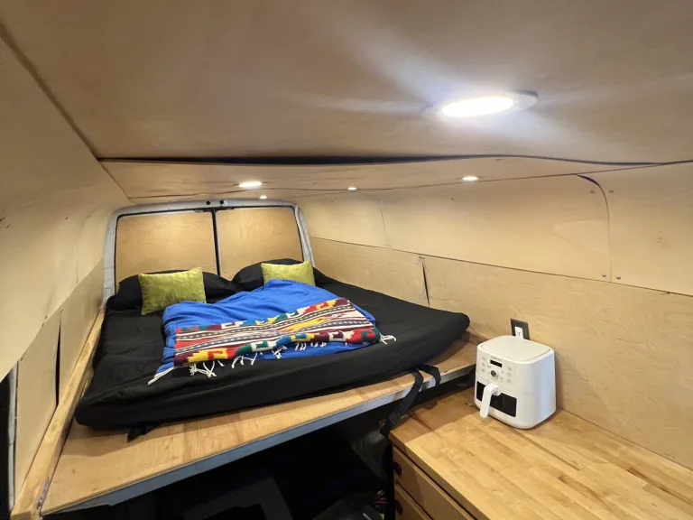 This setup keeps the lights, fridge, air fryer, kettle, and outlets running almost all the time.**Comfortable & Practical Interior*** Spacious **queen-size bed**
