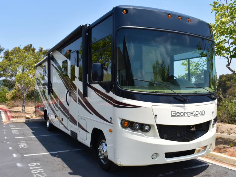 This rig is ideal for family fun at the beach, the lake or traveling to the National Parks. With bunkbeds, extra house batteries, solar and included camping gear, you cannot go wrong enjoying the outdoors and traveling in luxury comfort.Floor Plan: Sleeps 8 including the dinette with a single bed over the cab. Residential frig. Multiple TVs. Double slide. Front captain chair swivels. Covered when not in use. 50 gallon fresh water tank. Leather interior.Fully stocked kitchen for cooking inside & outside: BBQ, outdoor range top, 3 burner inside cook top with oven, microwave, pots, pans, utensils, & cooking items. Plus, the necessary French Press coffee makers.Camping Gear: BBQ. 4 Camp Chairs. 4 Bike Rack. Ladder Ball. Bocce Ball set. 2 canopies. Outdoor Kitchen set-up from REI. Mat for under the awning. And more...Engine & Driving and Misc: Ford V-10 engine with 3 camera system. Auto-leveling System. Solar Panels to power 4 house batteries + generator.Policies: No smoking of any kind. Pets on a case by case basis.Would entertain/be open to point to point rentals.
