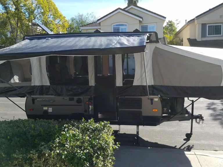 provide for 12” ground clearance to bring you everywhere- Want to know more about the 1970ESP trailer?We are located in northern San Diego, a few blocks away from the city of Poway.There are two power systems in the trailer. The 12v system runs the lights, fan, stereo, water pump, furnace, jack that lifts the trailer's roof and fridge. It's powered by the two batteries in the front of the trailer. The batteries can be charged through solar, shore power (plug it in) or by connecting the trailer to your vehicle. Solar is available to rent for $10 per day.Solar Details:The power sockets run on a 110v system, the same system we all have in our homes. The power sockets in the trailer aren't powered unless the trailer is plugged into an outlet, or connected to the generator. Power cable included for free, or generator available to rent for $20 a day. It's a 2000w quieter model, 1/4 as loud as a vacuum cleaner.Generator Details: