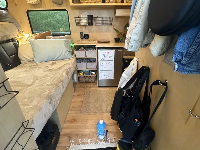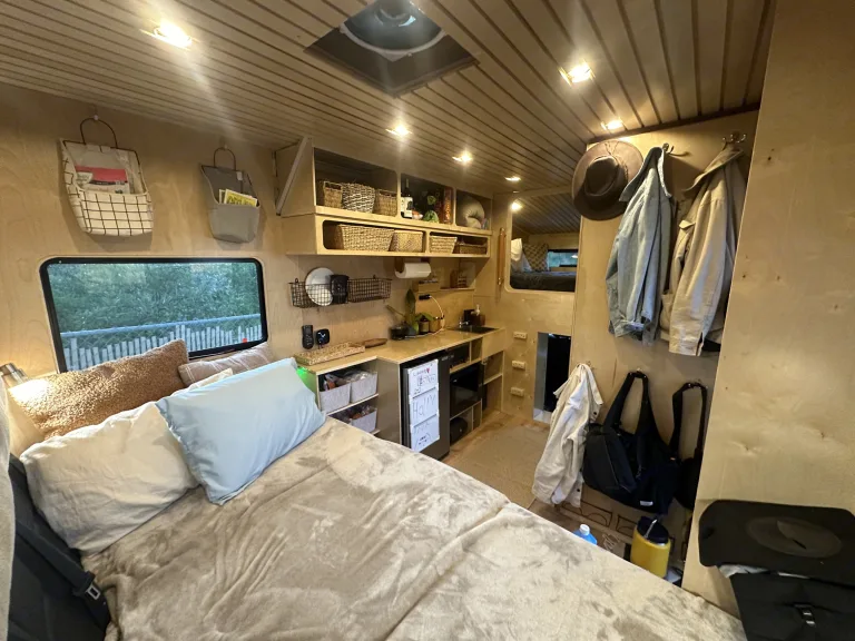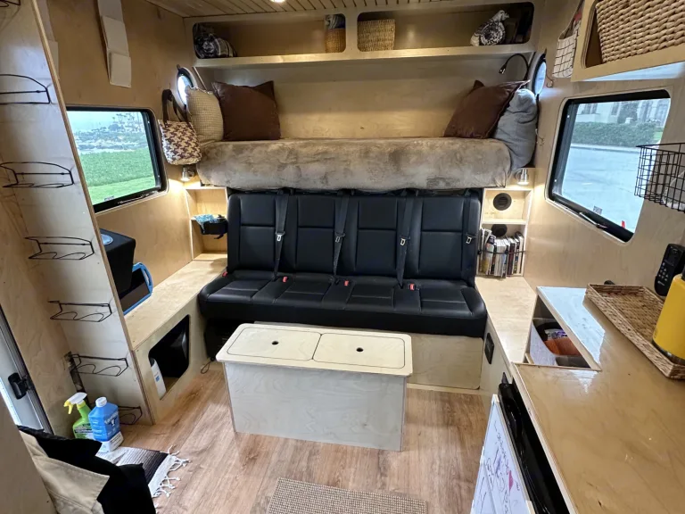 This is a one-of-a-kind adventure roamer with all of the amenities. This rig will make your adventure seamless & memorable! We have built out multiple Sprinters over the years, this truck is hands down better in every way. Here is what you get when you book our adventure truck:Seating: The front cab has a three-person bench seat with belts, and the camper has a sprinter bench seat with four three-point harnesses. The cab has a permanent pass-through which makes traveling in the front cab or the rear camper super enjoyable and convenient.Sleeping: The rear seating area turns into a twin bed which sleeps 1-2 comfortably, and the rear bunk sleeps 1 adult (or two smaller kiddos feet-to -feet!). The cab-over can fit 2-3 adults and up to four kiddos comfortably. The rear cab area can also be used as a sleeping spot for a 46” or shorter kiddo if needed!Kitchen: the rig comes equipped with a 12v refrigerator (which runs off of the solar set-up), and a microwave and small oven (which run off of shore-power or the generator). The gas powered stove can be used on the counter (with vents / fans on of course!) or outside on the camp table. A small sink is connected to 40 gallons of fresh water, and there is a 3 gallon Dometic fresh water system as well to refill water bottles on the road.Bathroom: The fully enclosed / separate wet-bath is practical and easy to maintain. The cassette toilet is easy to use - just dump the cassette at any rest stop bathroom. The 40 gallon water system runs through a 3 gallon point of use water heater which can run off of the inverter for hot showers on the go!Power: There are 8 USB outlets scattered throughout the camper (including the cab-over). The inverter provides three 110v outlets as well as additional USB slots. Additionally, there is a portable power bank that provides 110’s & USB outlets, and can be used outside of the truck.Air / Heat: The camper has an electric heater / AC under the bench seat that can be used when connected to shore power or generator. There is a diesel heater on the rear rack which can be run off of the 12v solar system. The camper also has a Maxxfan and multiple windows that open to provide adequate ventilation.Truck: The Ram 3500HD 4x4 is equipped with navigation, double rear-view cameras, and cab auxillary power control. The front end has a full Thuren suspension installed, and the back-end has air bags which can be controlled from the cab as well.Storage: There is a ton of storage scattered throughout the truck. The rear cab can be used as a garage to hold bags, boards, or whatever gear you are hauling with you. There are multiple storage areas in the kitchen, as well as above the rear bunk (& inside the bench table as well!). There is a full-length pass-thru storage behind the bench (accessed from the exterior) which can hold chairs, boards, etc. On the back of the truck a cable / wench system raises & lowers a shortage rack that can also hold boards & other smaller gear.Safety: The truck has all LED lighting as well as additional night running lights for added visibility. The tires have less than 1600 miles on them (as of April 2024), and the truck has recently been inspected and signed off by Ram. An air generator is included as well as a small med kit.We love taking our roamer out for adventures and really hope to pass the experience on to others. Please feel free to reach out with any questions you may have, and we hope to host you for your next trip!What's includedWe will make sure the truck is stocked and ready to go with everything you will need for your adventure including linens / supplies to make all of the beds (including blankets / pillows), kitchen gear / utensils, camp chairs, etc. If it is not mentioned, ask and if we have it we will include it!RecommendationsWe love heading up the coast to Big Sur or heading toward Utah (Zion)…can’t go wrong with either destination! We also love just hanging out on the beaches from San Diego to Santa Barbara.Other things to noteSorry, but no pets for this rig (we have kiddos with allergies unfortunately!), and of course no smoking inside please.