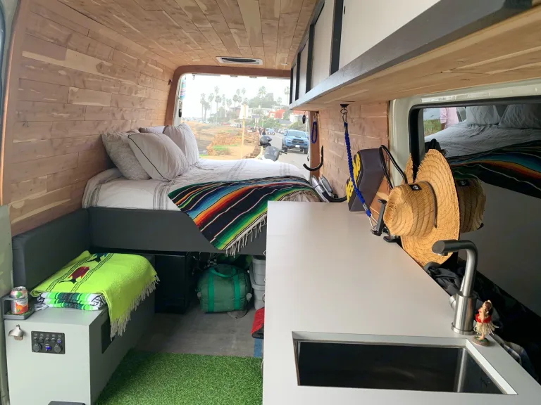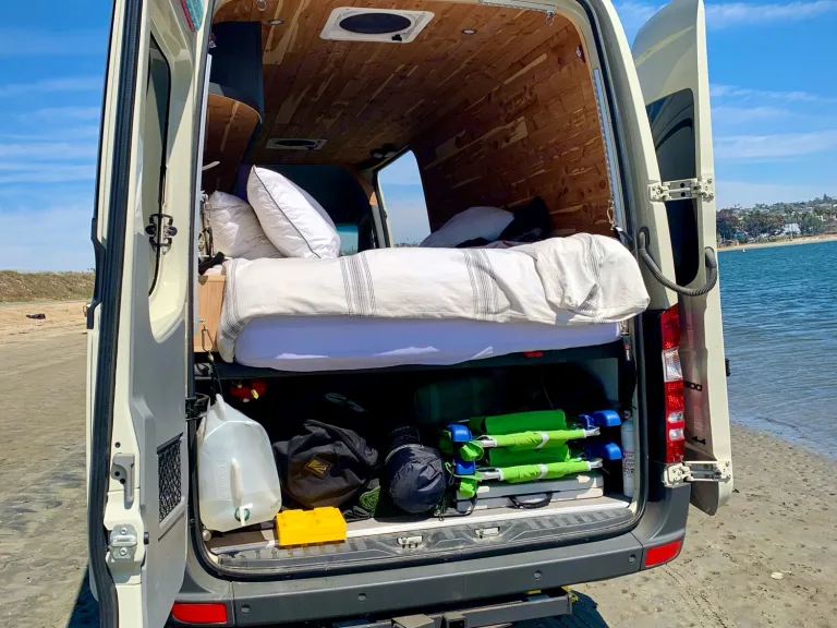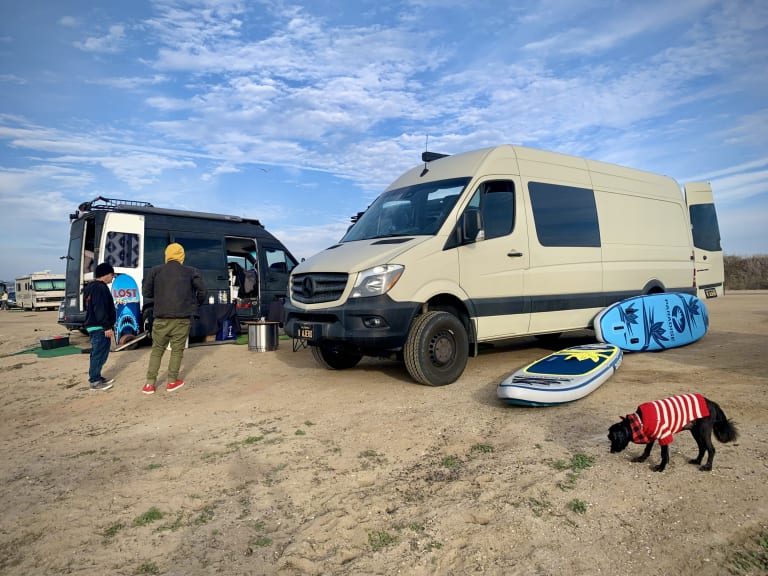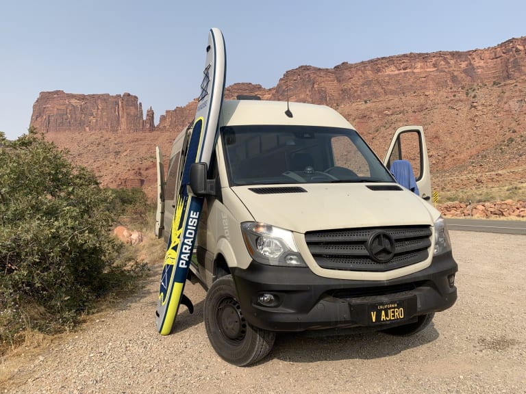 Fully loaded, 4x4 - Custom Sprinter Van. Lined with Beautiful Cedar. Ready for the Mountains, Desert, or Beach. + Tons of Free Camping & Beach Accessories...- 2 SUP Stand Up Paddle Boards / Beach Chairs / Umbrella & XL Sunshade / Beach Games; Frizbee, Bocce, Paddle Ball etc...- Fully Off-The-Grid Living / Solar Powered / USB & 12V Charging / Refrigerator- All Camping "Must-Haves" Included / BBQ Grill / Fire Wood & S'Mores / What's includedQueen Bed (BeautyRest Mattress) & Fresh Linens. (Super Comfy)! Extra Blankets.Refrigerator (Solar Powered ) + UltraLight Cooler 'RTIC 52 QUART"USB / 12 V Power Outlets for iPhone & Device Charging.2 Remote Control Ceiling Fans.Bluetooth Speaker, Dominoes, Playing Cards, Travel Books, Headlamps and Flashlights. Additional Solar Powered Outdoor Decorative Lights.2 Inflatable “S.U.P.” Paddle Boards with Electric Pump.2 Tommy Bahama - Beach Chairs & UmbrellaGames;