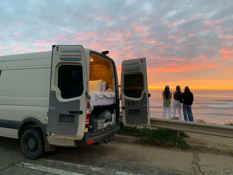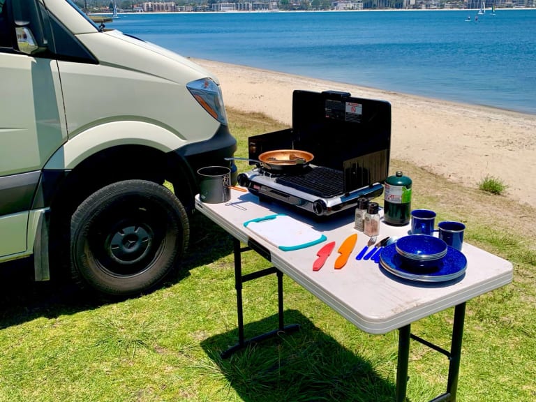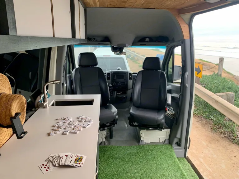Fire Wood bundle + Lighter Fluid.BBQ Grill and Table with Cookware/Utensils. + French Press for Coffee.Interior Surf Rack. (Holds up to a 9 foot board).Hanging Outdoor Shower. Outdoor toilet chair & indoor flushable boat toilet.Abundant Cabinet Storage & Open Space Below Bed for Additional Personal Belongings.+ First-Aid KitRecommendationsThis Van has Been Everywhere & is Ready to Go Back!!Perfect Setup for Camping at one of California’s Many Beaches;