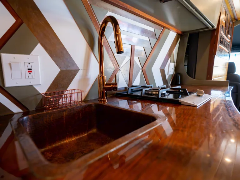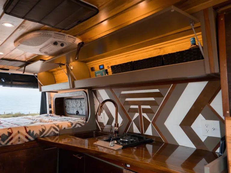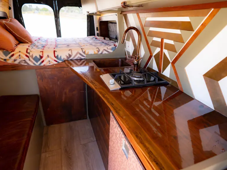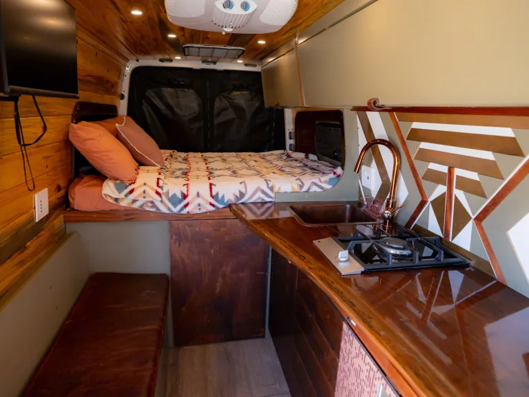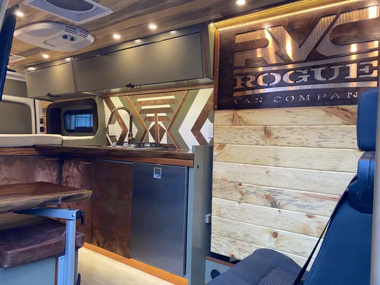 This FOX DEN van is a beautiful 2019 Mercedes Benz Diesel Camper van - professionally designed and built by Rogue Van Company in San Diego California. This van is jam packed with beautiful design, unique features, and modern comforts. FOX DEN is the perfect reliable van to take out on any adventure; designed for cold winter trips, dry desert excursions, and salty surf sessions, this van really does it all!