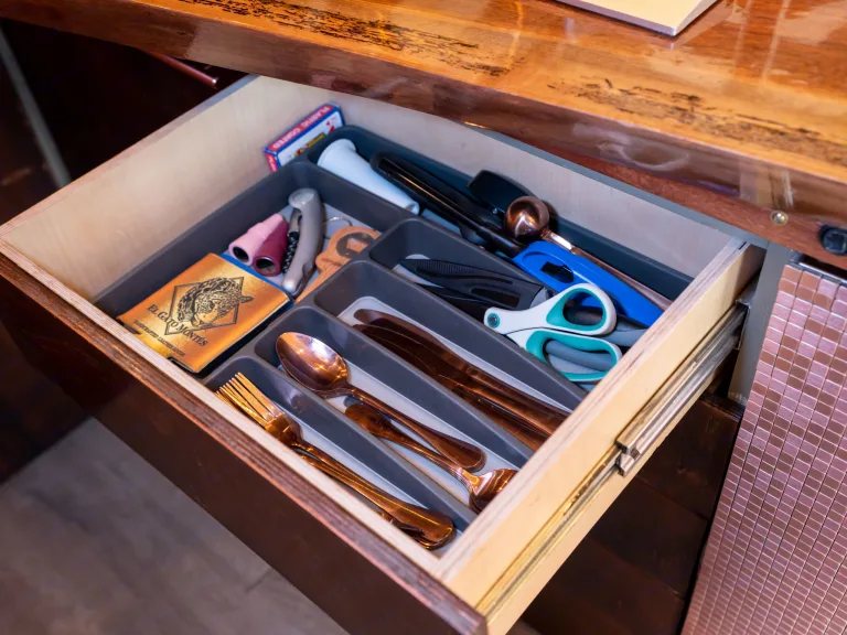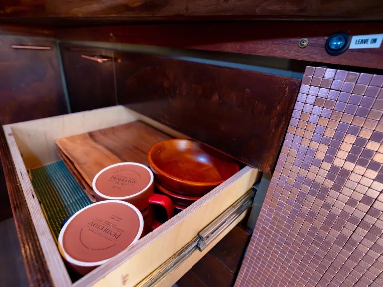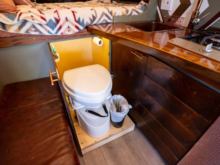 -Sideways main bed that comfortably sleeps 2 using a Flare space bump outs