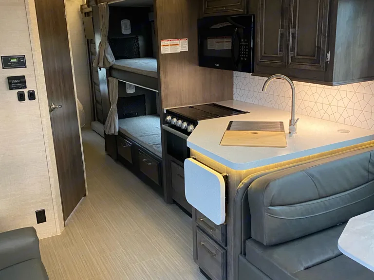 We are an active family of 5 that enjoys our time traveling to the desert to play with dirt toys, lounging at the river/lake, camping with friends, and giving our kids experiences they will remember for life.Looking to share our rv with others who make memories and will take care of it as if it was their own.What's includedWe would prefer people bring their own linens but can provide if noted in the add-on section.Stocked with all the necessities including dishes, camp chairs and outdoor rug27" TVs with DVD players in bunks, Fire TV in rear bedroom and front area, outdoor smart TVRecommendationsLocal delivery/drop-off available, we frequent Vail Lake, Pechanga, Carlsbad state beach, Chula VistaOcotillo Wells, Glamis, Superstition, Lake MartinezOther things to noteNo festivals, Mexico, tailgating, out of state trips without prior approval. The unit does have GPS tracking. Please include details for your trip. Towing and pets negotiable, please include details in your request.This RV is brand new, please help us keep it that way