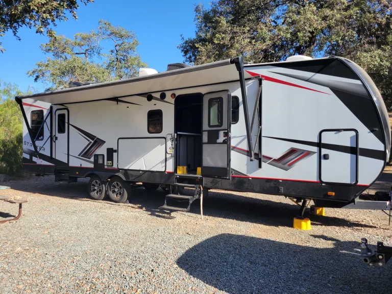 Our rig is a 2022 Stryker 3313 toy hauler tra el trailer. Featuring one of the largest kitchens out there, this rig has plenty of room. The rig also features ample lodging, with a king size master bedroom and a separate room with two king size bunks on a happy jack system. Being a toy hauler, this rig has a whopping 13 ft. garage that opens into an additional 9 ft. porch. Don't forget the outdoor entertainment with a TV, counter, sink, and stove. Included with the Stryker is a gas range and oven, fridge, freezer, and large microwave. A TV both inside and outside the rig, as well as two bathrooms, one full bath and one half bath.What's includedBest of all, WE DELIVER TO YOUR CAMPSITE! No need to worry about set up or take down. We set up the rig for you and show you how to use it. When your vacation is over, we will be back to pack up the Stryker for another adventure.RecommendationsThe southern California area has many places to camp and enjoy the outdoors. One of our favorite campgrounds is the KOA in Boulevard, CA. This campground has wonderful views of the mountains and the night sky and features a pool, hiking trail, and star gazing arena, as well as a petting zoo!Other things to notePets welcome!