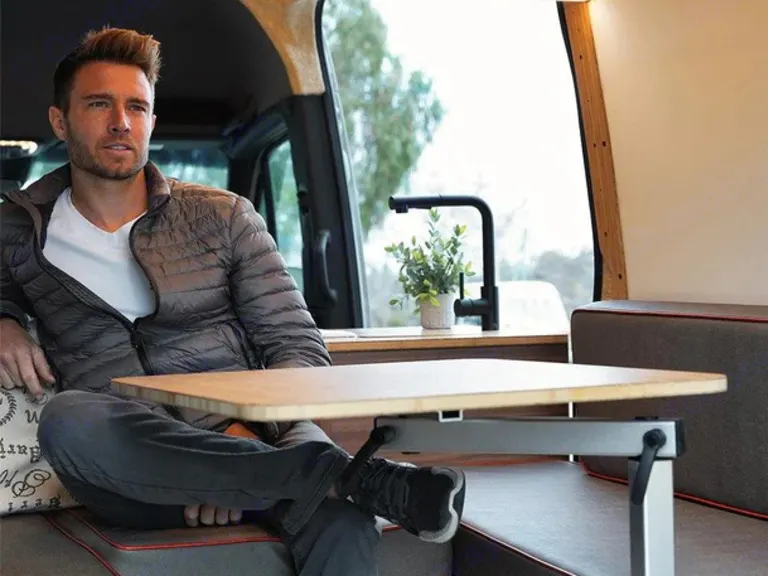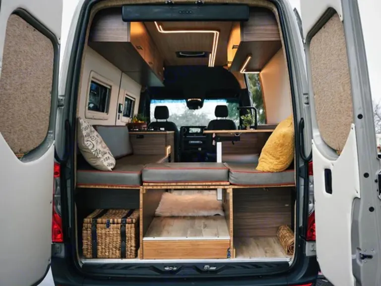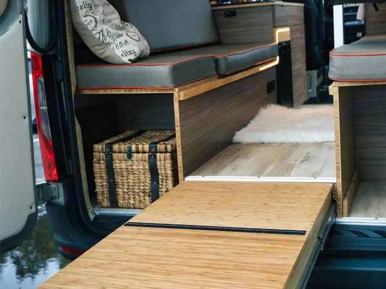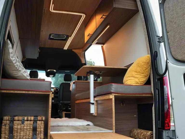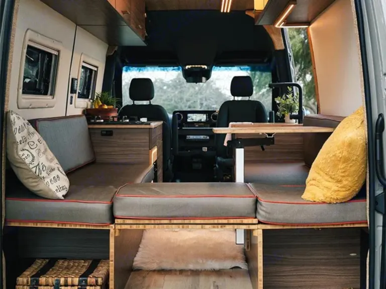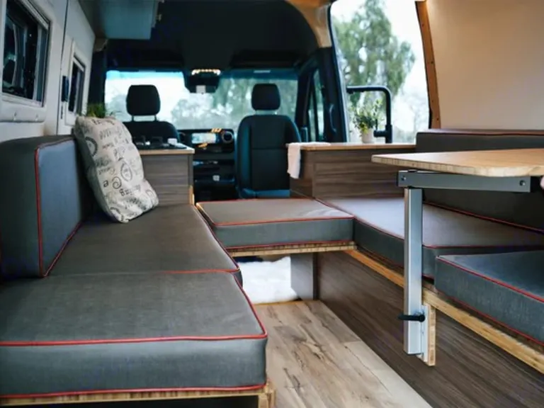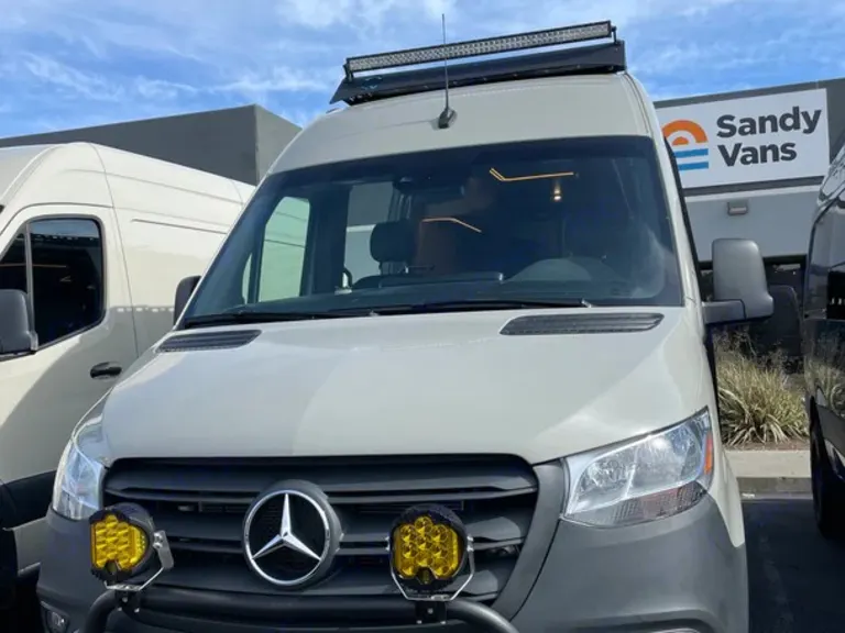 Get ready to embark on your next adventure with Hugh JackVan, the all-in-one road warrior from Sandy Vans.Built on the reliable Mercedes Sprinter Cargo 144, this van is designed for those who love the thrill of the open road—without leaving anyone behind. The 4x4 V6 Diesel Sprinter 144 build features a spacious U-shaped dinette with a premium bamboo finish, comfortably seating up to 6 for dinner or card games. With a swivel passenger captain seat, the space is open, social, and perfect for any gathering—reminiscent of its versatile namesake.Hugh JackVan is equipped with an incredible sound bar and built-in subwoofer, ensuring that wherever you go, the atmosphere is always spot on. With plenty of storage in the upper cabinets and under the bench seats, you’ll have room for all your essentials, whether you’re packing for a weekend getaway or a longer journey.As night falls, the dinette easily converts into a comfortable bed, stretching the width of the van and offering 75 inches of length (somewhere between a Queen and King size). Roll out the mattress pad topper, and you’ve got a cozy sleeping space for two (or more). With awning-style driver-side windows that open even in the rain, built-in screens, blackout curtains, a max air fan, and premium 3m thinsulate insulation, you’ll stay comfortable no matter the weather. And on those chilly mountain nights, the diesel heater will keep you warm.Whether you’re chasing waves, snow, or the perfect sunset, Hugh JackVan is the ideal vehicle for your adventures. This rig is designed for off-grid living with a Redarc RedVision system, 200 AH lithium battery, and a 2000-watt inverter. The system charges while you drive, with solar power and campsite plug-in options, keeping your adventure powered for days. The energy-efficient 12v refrigerator and LED lighting ensure your off-grid experience is as comfortable as it is exciting.The Sandy Vans Roof Rack, paired with the SV side ladder, offers tons of additional exterior storage space, including a 5ft rooftop deck! Fully L-track compatible, you can easily attach spare tanks, shovels, tires, and more. And with exterior lighting that turns night into day, setting up camp is a breeze.Hugh JackVan is ready for any terrain, thanks to all-terrain Falken WildPeak tires on Black Rhino wheels. The rear features the Sandy Vans Starboard Rack, allowing for endless attachment possibilities, from spare tire holders to bike racks.The 22-gallon fresh water tank, propane water heater, and outdoor shower ensure you stay clean no matter where your travels take you. Plus, the center storage drawer doubles as an outdoor kitchen setup, perfect for rolling in mountain bikes, dirt bikes, or SUPs, with secure tie-downs provided by the wall L-track system.Even with all these features, Hugh JackVan drives like a dream, offering all the amenities you’d expect from a Mercedes, including a 10-inch touchscreen entertainment center with Apple CarPlay, leather seats, lane assist, and smart cruise control.Other things to noteDIESEL ENGINE!