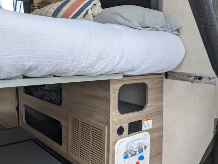 - Extra storage behind the bed for luggage, chairs, or bikes.