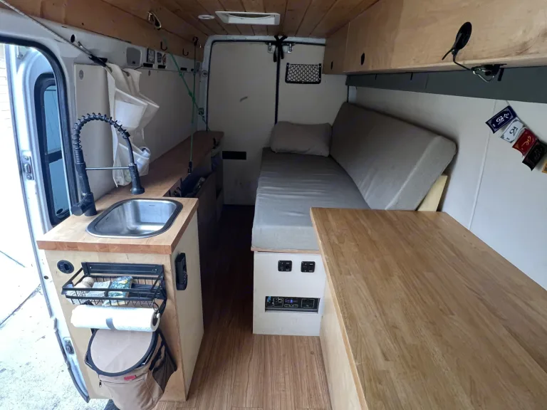 Cozy mobile office and adventure rig for remote work, surfing, camping, biking, hiking, exploring national parks, wine country, or ski resorts. Runs on diesel #2.What's includedCamping chairs and table, hammock, convert-able futon / twin / full bed. 5 gallon fresh water tank and 5 gallon grey water tank. Enough battery to last a long weekend. WiBoost wifi booster to pair with your hotspot for remote work in distant locations. VW style swivel seats too! Set up the camp and hang your hammock off the back.RecommendationsShe's been all over the west coast! Take her on your next adventure, or remote work getaway. Message me for advice on how to make your dream adventure a reality!Other things to noteBe mindful of state laws and don't forget to use the backup camera.
