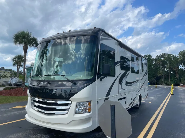 Shows like a brand new RV, extremely clean and very well equipped. My partner and I have done our very best to make traveling on the road as comfortable as possible. I've stocked a full kitchen with premium supplies, quality sheets, pillows, and lots of extras that make life more enjoyable on the road. The RV had two slides that extend the bedroom and living room area. This RV is perfect for new RV drivers such as myself. At only 27 feet, lane change camera capability along with a backup camera will make maneuvering very easy.At only 27 feet it's a very efficient design. The queen bed in the back fits 2 adults, the over cockpit drop down bed (approx a full) can also fit 2 adults up to 750 lbs. The couch folds out to a small bed that would fit up to two small children. The dinning table also folds out to a bed and can fit two older children 10-14 give or take.Want to watch Netflix or Disney+? The coach has 3 TVs, one outside, all ready to connect to your mobile device and use your streaming accounts thru Roku.I have a bike rack available if you need it, along with 2 electric bikes and 2 mountain bikes for an additional daily fee.Overall this is a great RV for your next adventure. It has everything you need to stay comfortable and enjoy the outdoors.