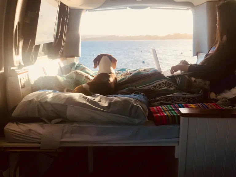 Hi My Name is connlaoth. We custom built our van camper from a passenger. My Fiancé and our dog snoopy have went on many road trips through California, Utah, Arizona, Nevada and Washington state! It is so much fun being able to park anywhere to camp and no one knows you are inside as we have black out curtains blocking all light. We love to hike but if the weather is bad we can watch a movie or play the super Nintendo that we keep in the Van.