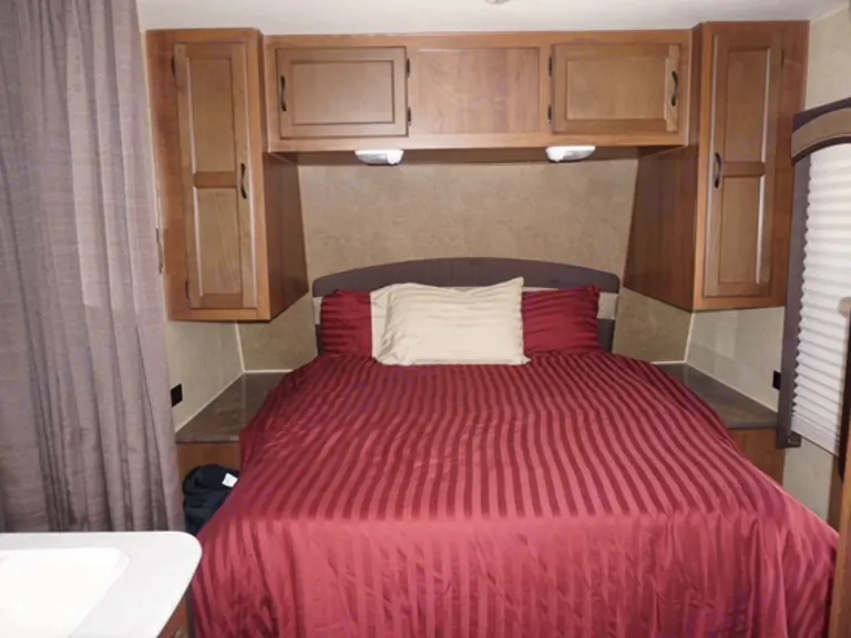 Our 2014 Jayco Flight 25rks travel trailer is fully equipped with everything you will need for your perfect family getaway or a quiet romantic camping trip.The trailer is 28 ft in lengthVehicle towing capacity needed: 6,500 lbsWhat you will find in our travel trailer:1 Memory Foam Queen Bed