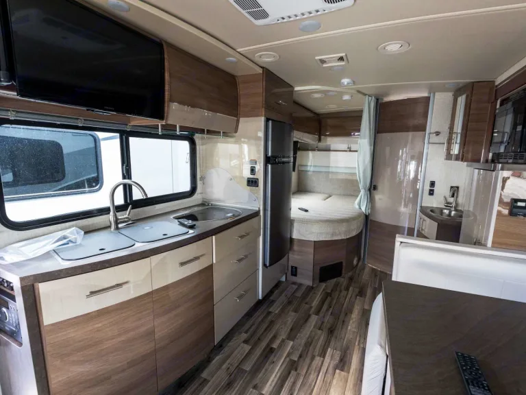 Sleeps 4 adults and 2 kidsThis high MPG, high luxury, easy to drive 24.1 foot RV offers a spacious and open floor plan on the Sprinter Chassis category. Up to six people can enjoy this very comfortable living area with its full entertainment system and fully-equipped kitchen. The corner queen bed, the large convertible dinette and the over-cab bed each sleep two. Additional features of this very popular RV include expansive interior and exterior storage, solar options, swivel cockpit seats, an outdoor shower and more.Comes stocked for your convenience with:
