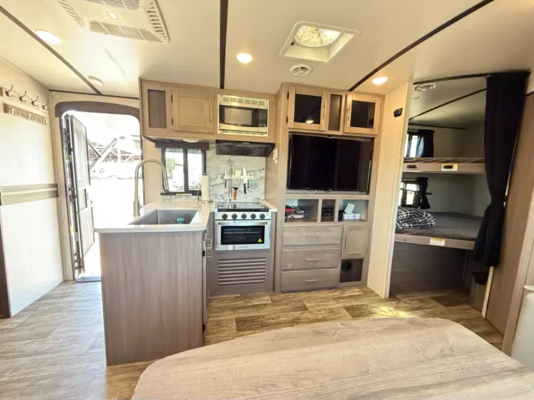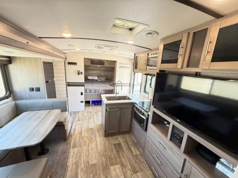 Book 6 nights, get 1 night free! Perfect for long getaways!Please contact for delivery availability before booking. Delivery includes setup, pickup, dumping of gray/black tanks will be an additional fee if interested.Start your adventure off the open road with our 2021 Crossroads Sunset Trail Super Lite SS242BH — a luxurious, modern travel trailer. This beautifully maintained trailer combines comfort, versatility, and reliability, making it perfect for families, groups, or solo travelers looking to explore in style. Inside, you’ll find a spacious, thoughtfully designed interior featuring a full kitchen, cozy sleeping areas, a 42-inch TV in the main room, and a Bluetooth indoor/outdoor stereo system with built-in AM/FM radio to set the mood wherever you are. Pull out propane BBQ grill and outdoor mini fridge that I accessible while you're outside enjoying a family sit-down around the bon fire.For those who enjoy extended stays or dry camping, the trailer features a 400W solar panel system paired with four new AGM blue-cap batteries and an inverter, providing dependable off-grid power. It also includes two 2-inch hitch receivers — one at the front above the propane tanks, perfect for mounting accessories like bike racks (racks not included), and another at the rear for added versatility.Whether you’re setting out to discover national parks, coastal escapes, or mountain hideaways, this Sunset Trail offers all the comforts of home with the spirit of adventure built in. Rent it now and start creating unforgettable memories wherever the road takes you.What's included• Pillows, sheets, and blankets provided upon request.