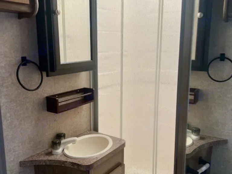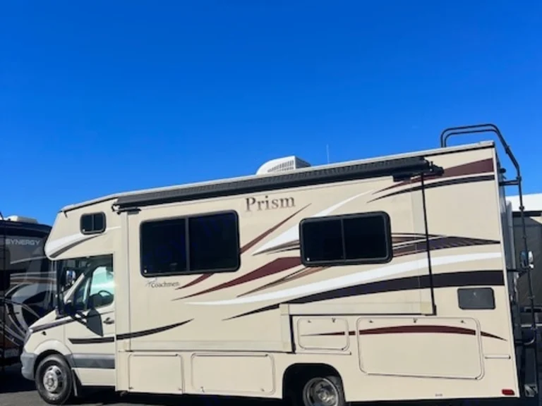 Perfect for a long trip or just a quick getaway the 22' Prism sleeps 6. Full kitchen with all the amenities, fridge, freezer, stovetop, oven and microwave. Spacious bathroom with toilet and shower accommodations. Features an open floorplan with 1 walk around queen bed, 1 full and 1 dinette conversion. The exterior has booth attached awning and outdoor entertainment system.