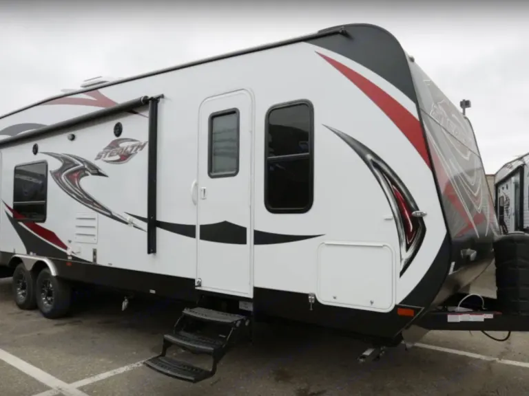 The Forest River Stealth FQ2916 toy hauler travel trailer offers a front bedroom, a single slide out, and 16' of cargo you enter the front entry/exit door, you are in the private bedroom. It includes an RV queen bed with wardrobes on each side, and a door directly into the bathroom. The side aisle bathroom includes a toilet, linen storage, a corner shower and a vanity with sink. The kitchen counters are L-shaped. You will also find overhead cabinets along the exterior wall, a pantry, and a three burner cook top with oven and a sink. There is also a refrigerator along the opposite wall with a TV above.Moving toward the rear, there is a sofa, overhead cabinets, and a table along one wall. The opposite wall has two captains chairs with a table between them, plus overhead ere is an electric bed with flip sofa and a rear ramp door at the back of the cargo space. There is also a side man door in the cargo area as well for easy access once the rear ramp is closed.Outside you will find an awning, storage, and a space prepped for an Onan generator, plus so much more!