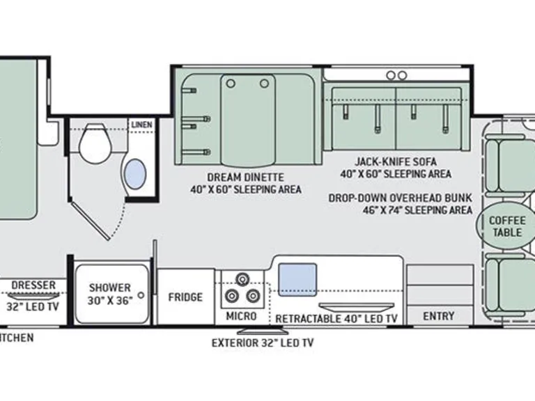 From the moment you step into this beautiful "home on wheels", you'll notice all of the obvious comfort features and delightful amenities - right down to the small attention to details - that sets this coach apart from other lesser brands. Its efficient, maneuverable 30' length makes it easier to drive and it still fits into most State and Federal campgrounds and parks.Your whole entourage will enjoy the huge, spacious electric living/dining room slide-out, full-sized kitchen with two door refrigerator/freezer, large bath with stand-up shower and huge queen sized walk-around island bed. The extra twin bed in the dinette and soft-touch leatherette sofa with Queen hide-a-bed provide ample sleeping and recreation space for every member of the family.The driver will enjoy the effortless driving of the powerful 362 HP Triton V-10 engine, smooth automatic transmission, cruise control, leatherette cockpit captain's chairs, power brakes, power steering, rear-view and side-view color camera, power mirrors and more!This year, take a wonderful camping vacation - in style and comfort - that you'll remember for a lifetime. Call today to reserve your desired travel dates!