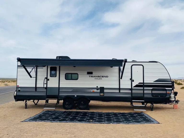 The perfect fit for a couple! Also, large enough to sleep a family of 8.It is stocked with all the essentials for a great trip! The trailer offers additional convenient extras such as.. whisper quiet generator and 2 propane tanks.Includes Tv/DVD player and Indoor/outdoor stereo, 3 burner stove and ample refrigerator/freezer space. Features large awning with led lighting.. plenty of indoor & outdoor storage.The privacy of a large master suite with it’s own entrance and queen size bed. In addition to bunk beds, which are large enough for adults or children. Roomy bathroom with privacy doors on both sides.. nice size shower with skylight.It has an open living/ kitchen area with two couches; one converts into a bed, while the other has two lazy boy recliners.This travel trailer rental comes complete with many camping necessities..
